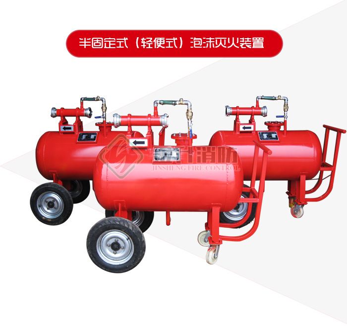 PY系列半固定式(輕便式)泡沫滅火裝置由泡沫液罐、負壓比例混合器、控制閥、PQ8泡沫槍及65型消防水帶等部件組成。